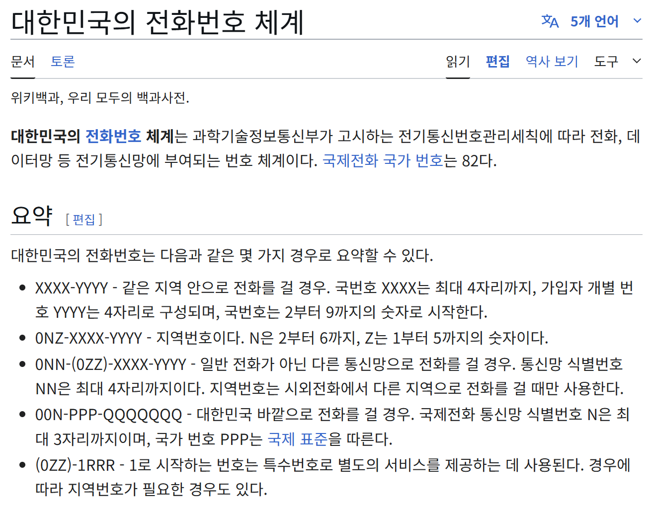 1. 해당 페이지에서는 지역 전화 국번 번호에 대한 자세한 내용을 확인할 수 있습니다. 우리나라 전화번호 체계는 과학기술정보통신부에서 정한 전기통신번호관리세칙에 따라 정리돼 있습니다. 전화나 데이터망 같은 전기통신망에 부여되는 번호들의 체계가 모두 여기에 포함되어 있고, 국제전화 국가번호는 82번으로 정해져 있어 해외에서 우리나라로 전화할 때 이 번호를 먼저 입력하게 되어 있습니다.