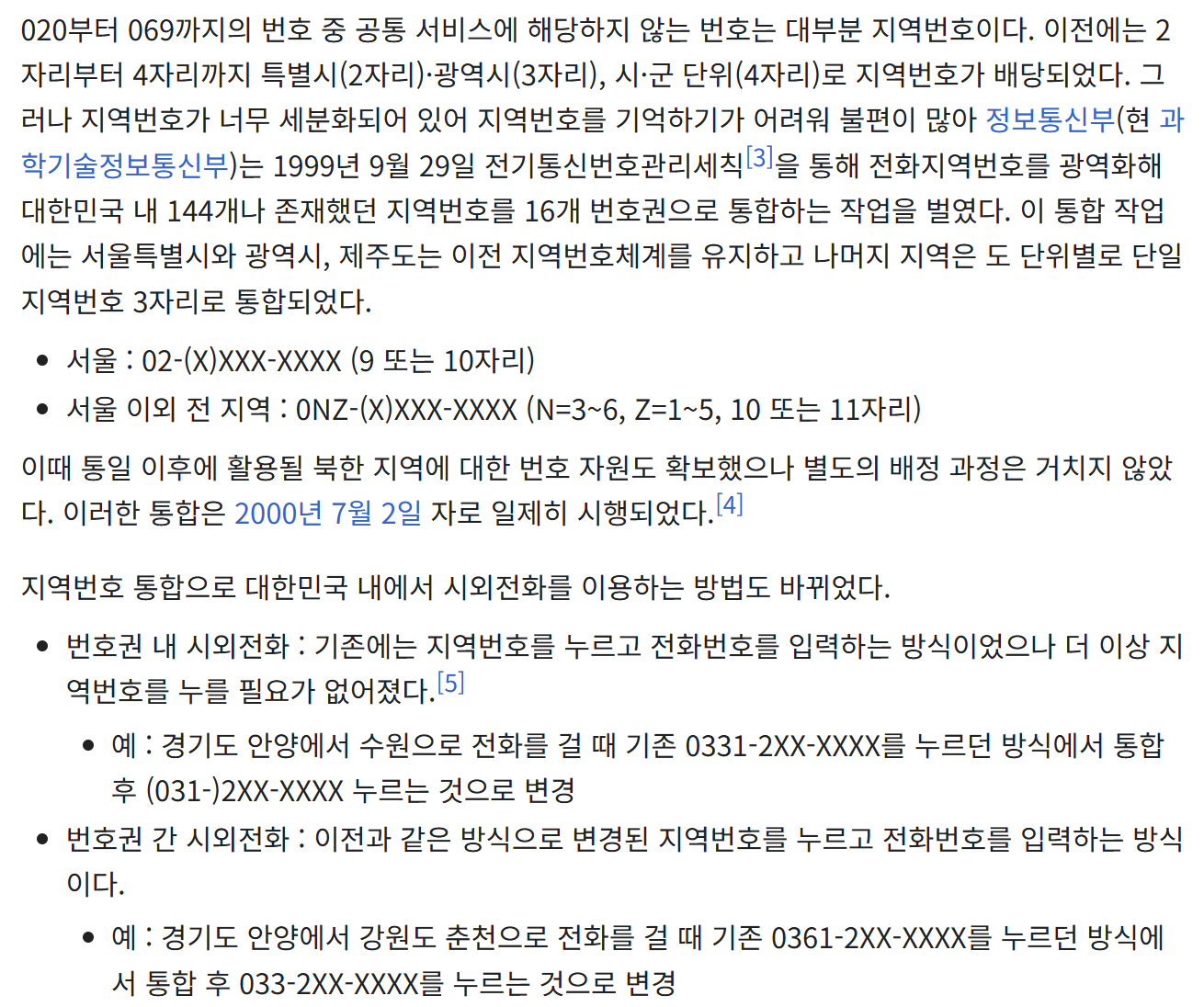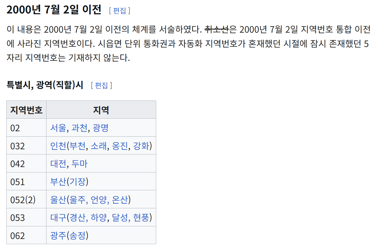 5. 2000년 7월 2일 이전의 전화번호 체계에 대해서도 정리돼 있습니다. 그 당시 지역번호 통합 이전의 번호와 지금 사라진 번호들도 함께 적혀 있어서 과거 번호 체계가 궁금할 때 참고하기 좋습니다. 예전에는 시읍면 단위 통화권과 자동화 지역번호가 섞여 있어 5자리 번호도 잠깐 존재했지만, 지금은 찾아볼 수 없습니다.